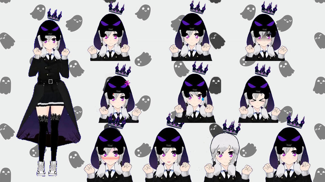 A complete model ($150 dollars) includes 6 expressions + 2 personalized expressions, 2 changes of clothes that can be glasses or sweaters or other similar items that are activated or deactivated with a key, 1 pet or chibibolita that is a character designed to be your companion or your transformation, the design of the pet/chibibolite must be a simple design and not at all complex; iPhone Tracking and VRM Blendshapes.